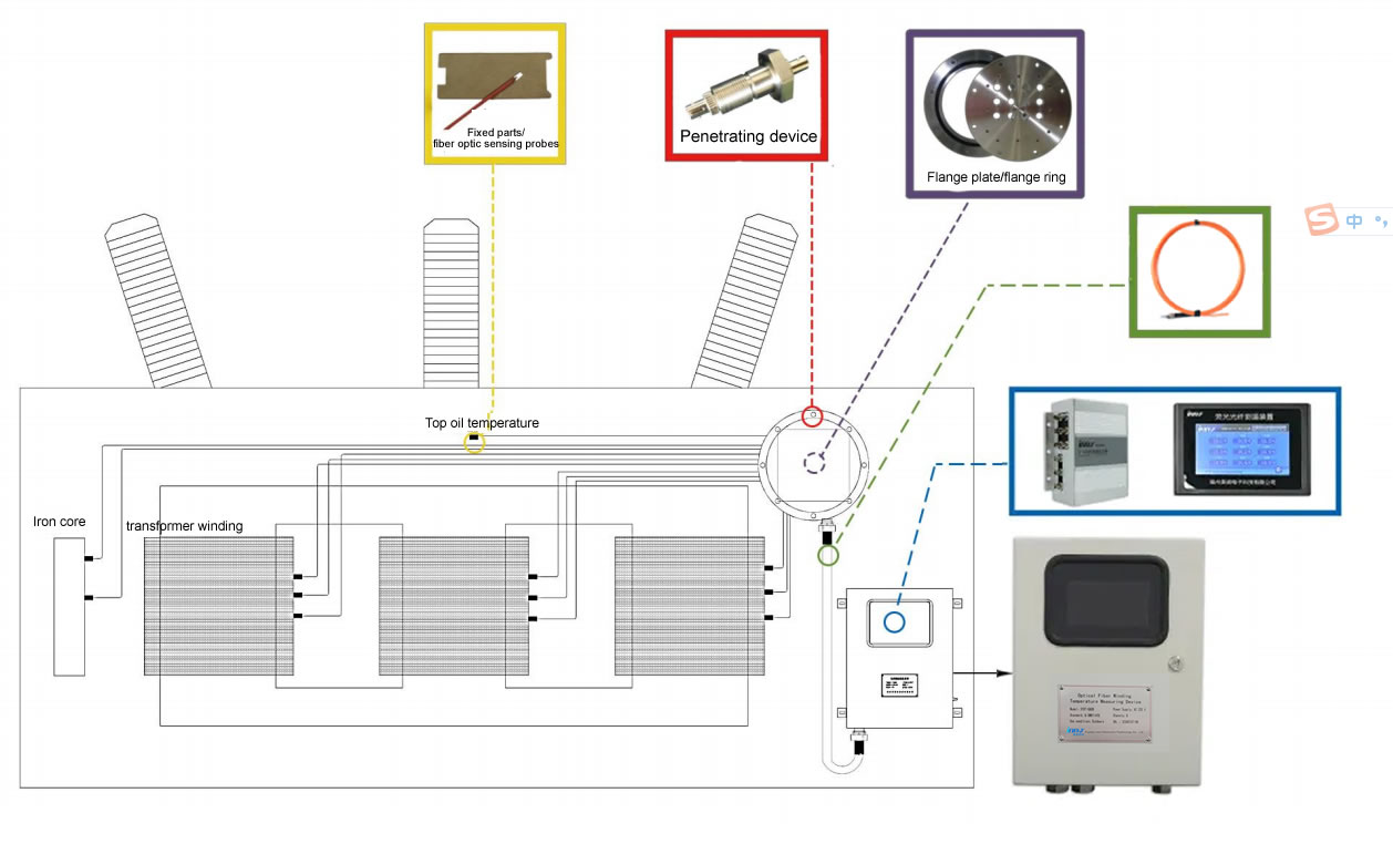 - Sensor serat optik fluoresen optimal untuk transformator terendam oli untuk secara langsung mengukur suhu hotspot berkelok-kelok hingga 200°C